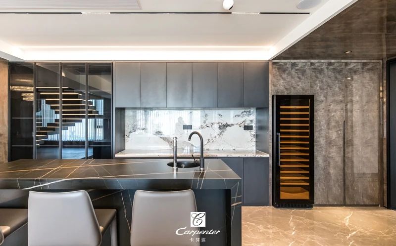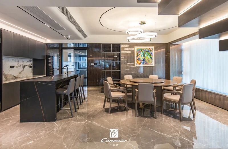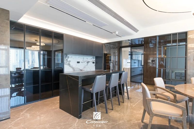 餐廳相鄰而設(shè)的吧臺兼具島臺功能
